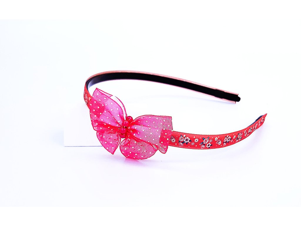 Růžová čelenka s motýlem ve stejné barvě se hodí jak pro velké, tak i pro malé slečny. Stuha má něžný květinový motiv. Motýlek má velikost 5 cm a je vyroben ze šifonu. Designový pásek je lehce magnetický, aby krásně přilnul k čelenkovému základu, který k tomuto motýlkovém designu potřebujete. Tento základ si můžete taktéž koupit zde: /celenkovy-zaklad/