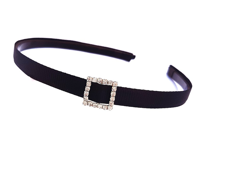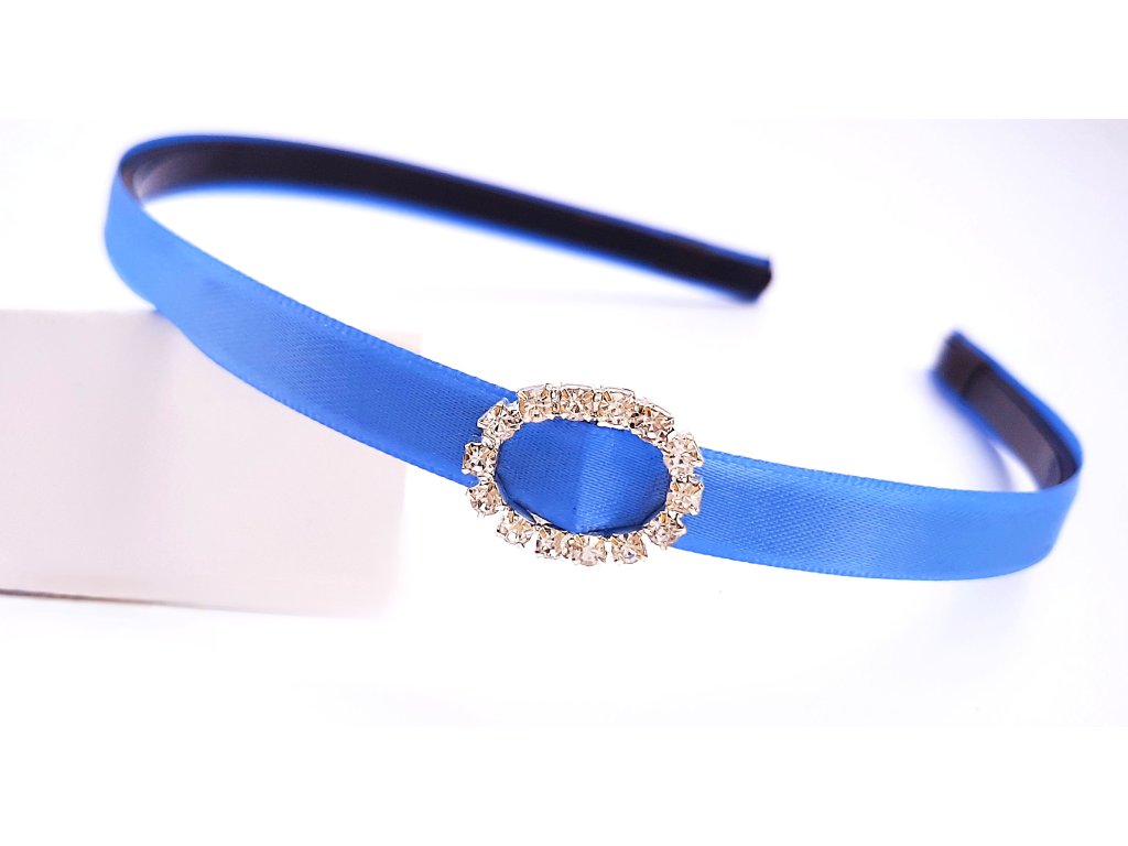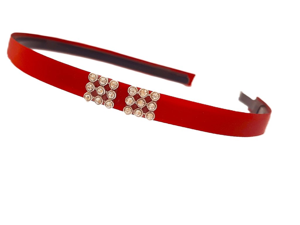 Sada jednobarevných čelenek se štrasovou ozdobou na straně. Čelenka je vyrobená z oboulících saténových stuh. Štrasová ozdoba má zejména tvar srdce, kruhu či čtverce.