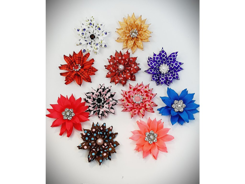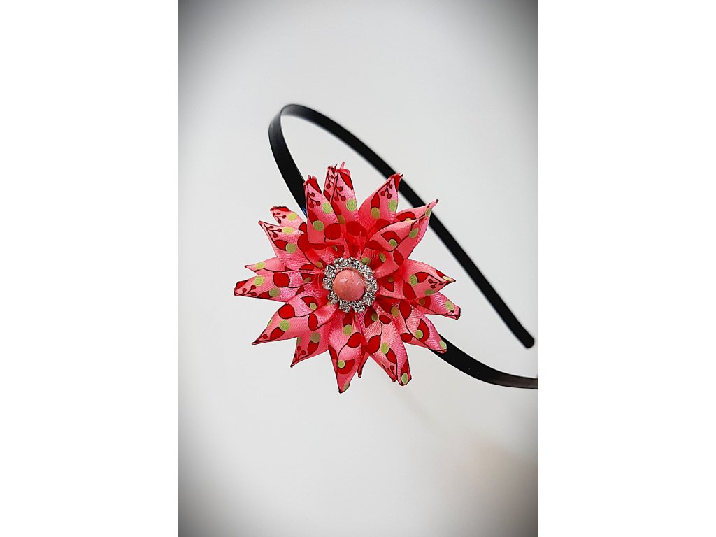 Květy jsou dělány ručně, z pevné rypsové stuhy ,obvod květu je cca 5 cm. Ozdoba má úchytné poutko, díky kterému se lehce navlékne na čelenkový základ, který zde také koupíte :https://www.celenky.eu/celenkovy-zaklad/