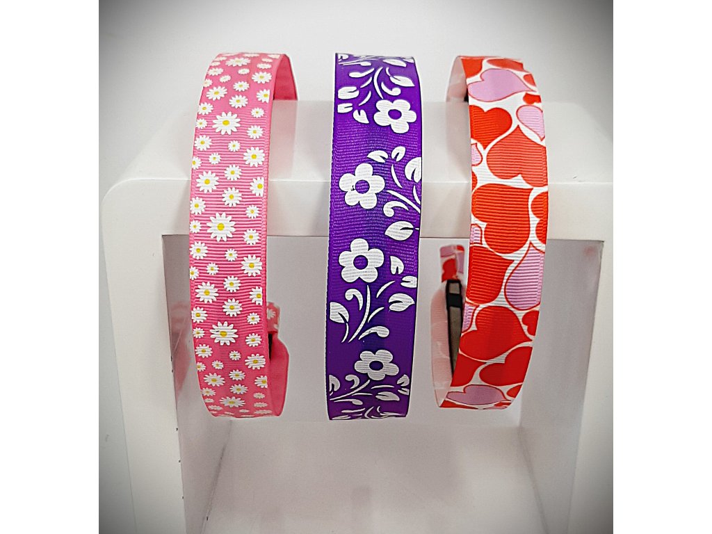 Mějte na paměti, že tyto čelenky jsou vyráběny ze stuhy, která je o mnoho širší než čelenkový základ, proto je dobré po každém použití stuhový design ze základu svléci a řádné ho narovnat jinak se postupem času zkrabatí*, což není závadou. Po zasunutí do vlasů se opět krásně narovná.